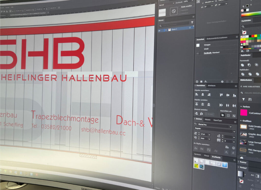 Werbegrafik-Design gehört zum Bereich der „visuellen Kommunikation“. Unsere Grafische Abteilung plant und entwirft kreatives Design und schafft damit die technisch-gestalterischen Voraussetzungen zur Produktion jeglicher Werbemittel. Die Aufgaben unserer Werbegrafiker reichen von der Beratung über den Entwurf bis zur unmittelbaren Gestaltung des Werbemittels. Unsere Leistungen im Bereich Grafik umfassen die Logoentwicklung und sämtliche Printprodukte, wie zum Beispiel Visitenkarten, Broschüren, Flyer, Einladungen, Textilien, Schilder und Banner, Fahrzeug- und Objektbeschriftungen und sämtliches Werbematerial.